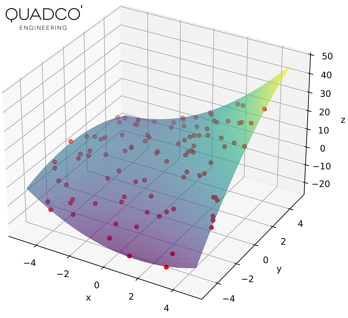 From the DOE results we build response surfaces: mathematical models that predict how your design will respond to any parameter change, instantly and without running additional simulations. These response surfaces drive sensitivity analysis (which parameters matter most?), trade-off studies (how does weight relate to stiffness?) and goal-driven optimisation (find the parameter set that simultaneously satisfies all your targets).
